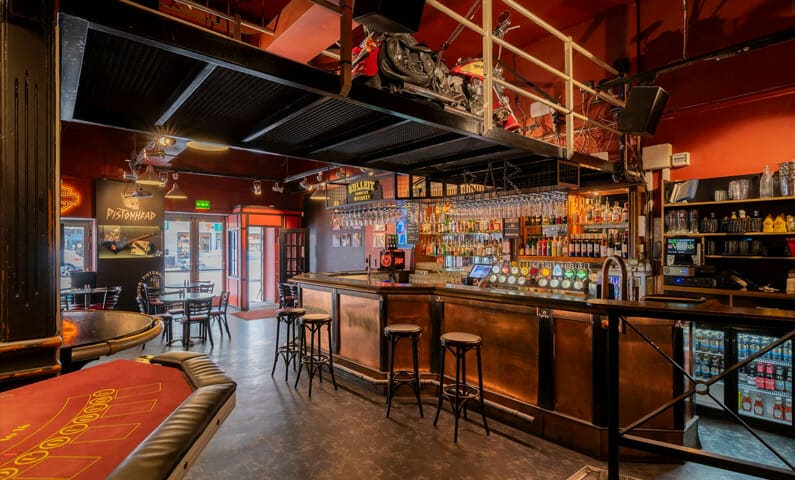 If you come here during the after-work slots, you can look forward to happy hour with great prices on drinks (and food) at the bar. You can order everything from Irish Coffee and Vodka Red Bull to cava and champagne. And, of course, bottled beer, draft beer, and wine. The decor is red-themed, and the rustic wooden tables and cave-inspired decorations feel just right for a rock bar. Hang out at the bar, sit down at one of the tables, try your luck at the casino, or spontaneously dance on the spot. Everything can happen at Kellys Bar.