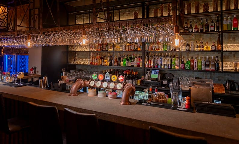 The bar at The Flying Horse is more than well-stocked. Beer lovers can enjoy 80 different beers, including 19 different draught beers and several exciting guest taps that are regularly changed. So whether you’re after a lager, IPA, porter, stout, or wheat beer, there’s sure to be something for you. And if you’re a whisky fan, there are 120 single-malt whiskies to choose from. Order an old favorite or try something new and look forward to an enjoyable evening in the company of good friends.