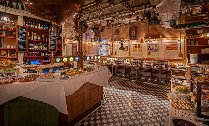 Restaurant Kvarnen turns weekends into a culinary feast with its unforgettable brunch. Here you’ll be greeted by a generous buffet full of delicacies, from classic home-cooked favorites to more innovative culinary creations. Start with cold dishes, such as pickled herring, smoked salmon, shrimp, salads, cheeses, and freshly baked bread, but leave room for the hot dishes! Naturally, there is bacon, scrambled eggs, and omelets, but also meatballs, Västerbotten cheese pie, and much, much more. Now it may be time to loosen your belt, because the dessert buffet is full of goodies, from waffles with jam and cream to apple pie with custard.